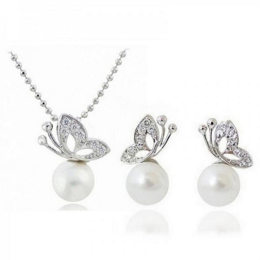 Alloy, electroplated white K, rhinestone, imitation pearl Pendant length: 2cm Width: 18cm