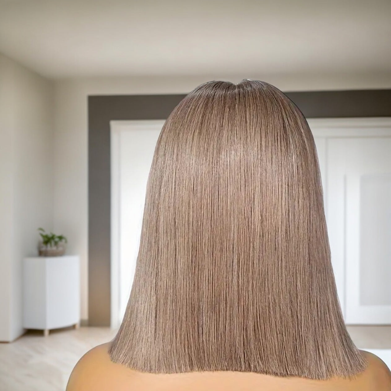 Sis, are you looking for a fabulous new hairstyle? Check out our 7x5 Pre Cut Lace Front Light Ash Brown Bob Wig! Made with 100% human hair. This wig is pre-bleached and features invisible knots for a natural look. With a pre-plucked hairline, you'll be ready to rock this 14-inch beauty in no time. Plus, it's got a density of 180% for that extra volume. Don't miss out on this amazing wig, it's perfect for any occasion! Grab yours now and slay with confidence.
