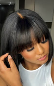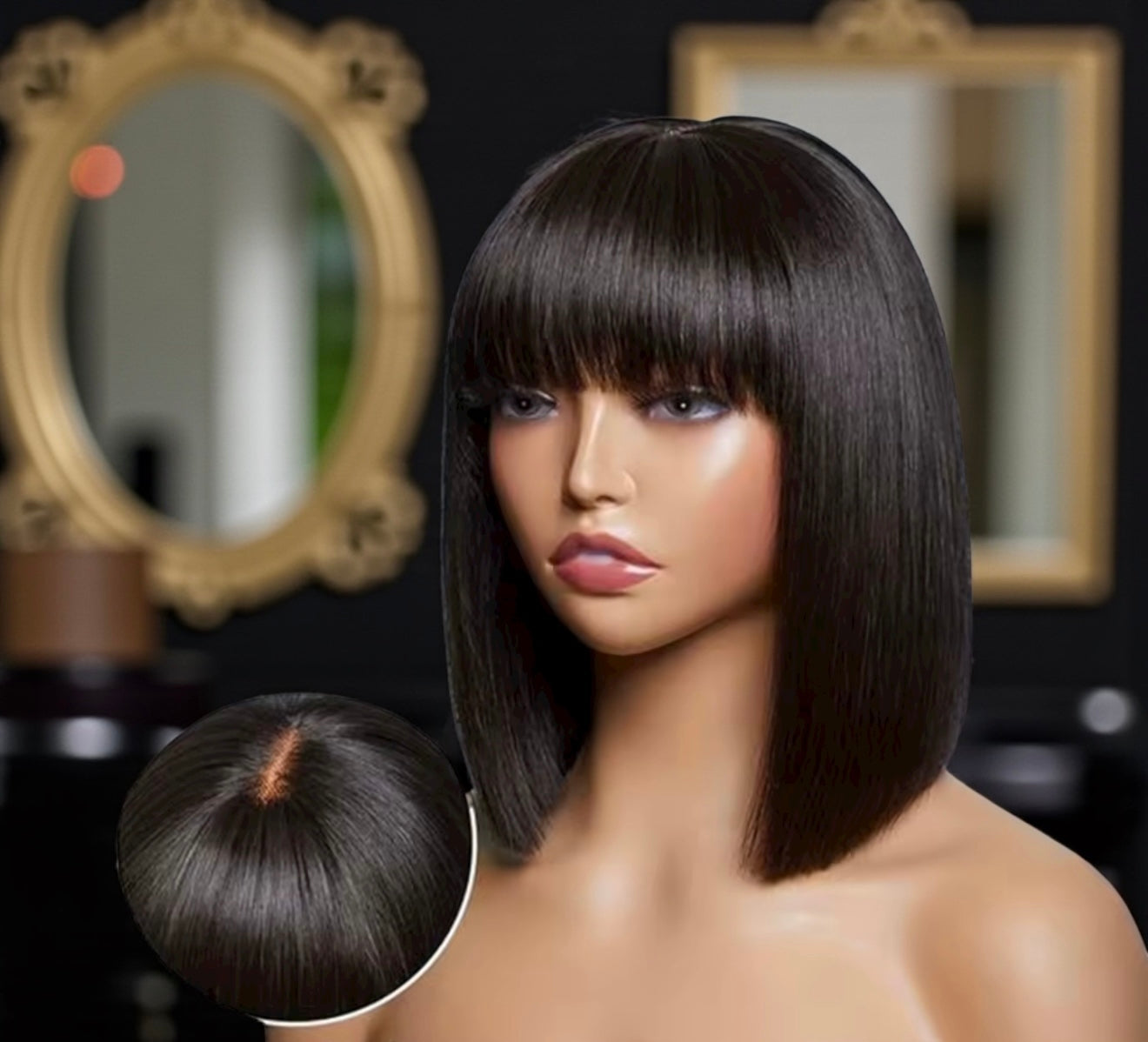 YWV 100% Brazilian Hair Bob with Bangs. Bone Straight Hair 10” Black