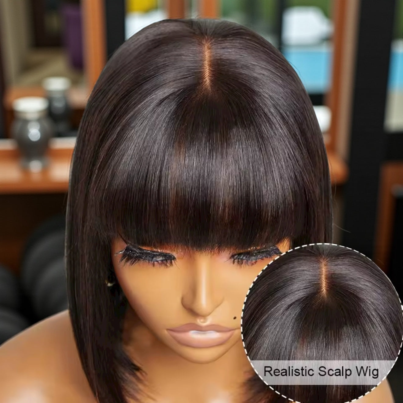 Transform your look with our stunning Bone Straight Human Hair Bob Wig with bangs. Designed for elegance and versatility, this Brazilian beauty features: