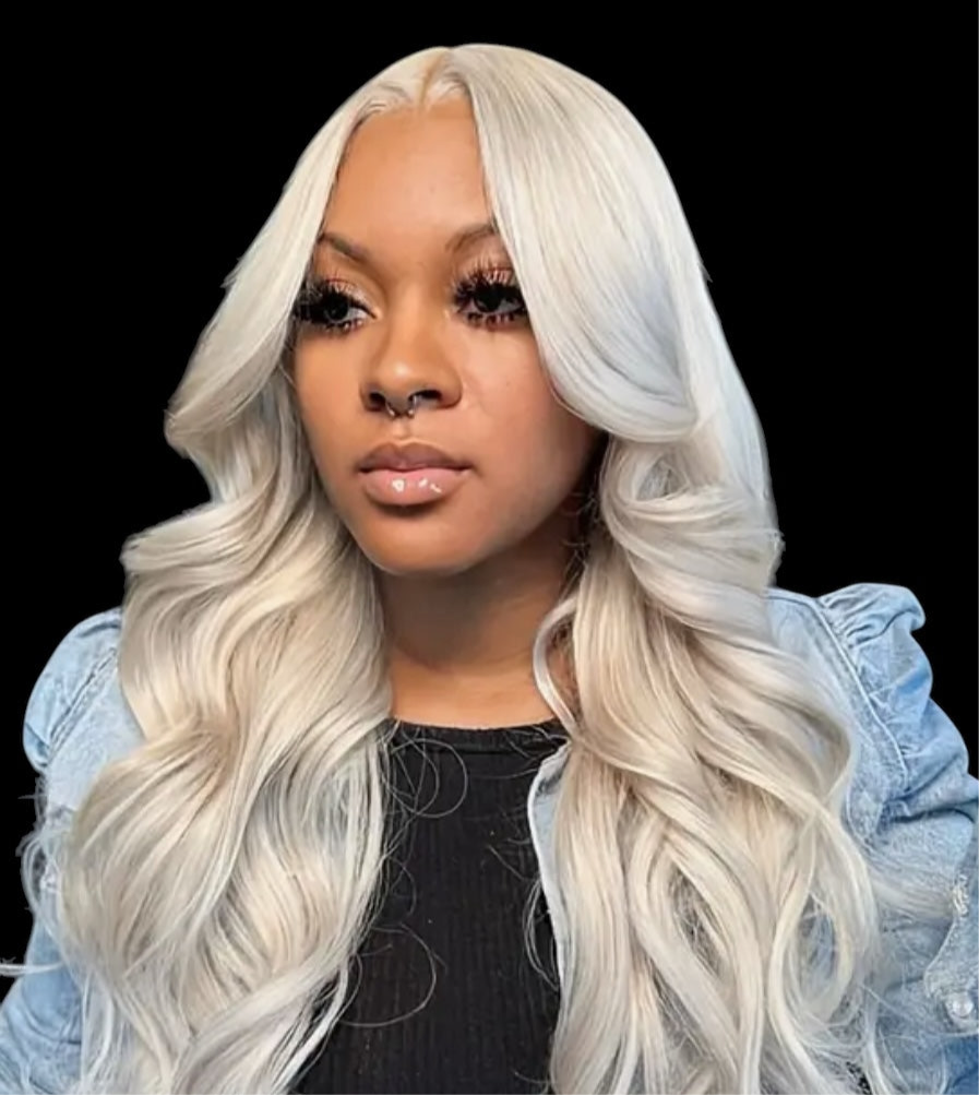 Step into the spotlight with our stunning 180 Density 13x4 platinum, Lace Front Wig! Designed for the modern woman, this body wave human hair wig offers a luxurious feel and a natural appearance that will turn heads.