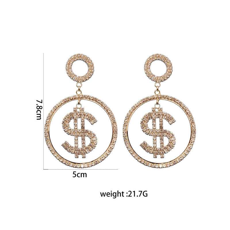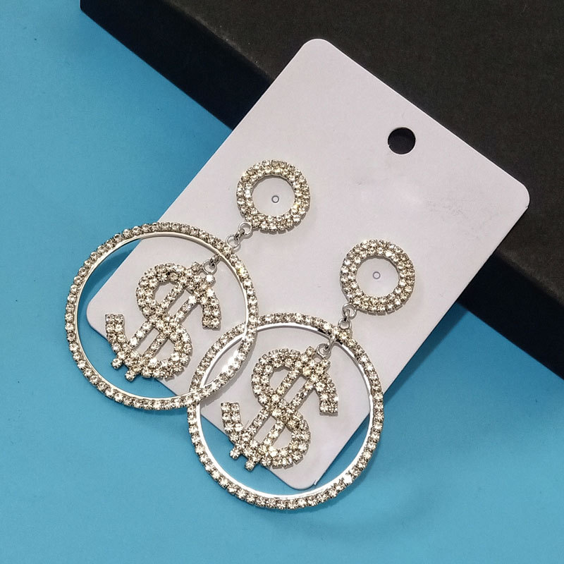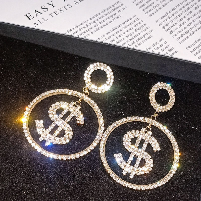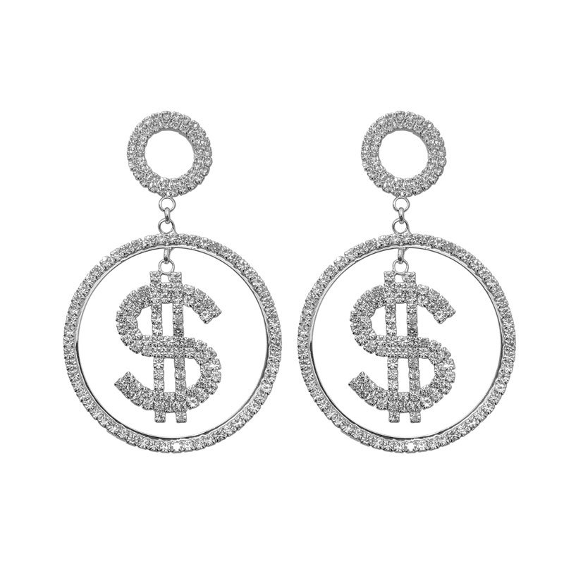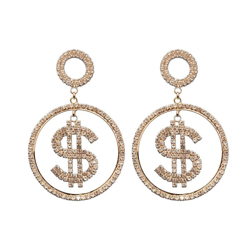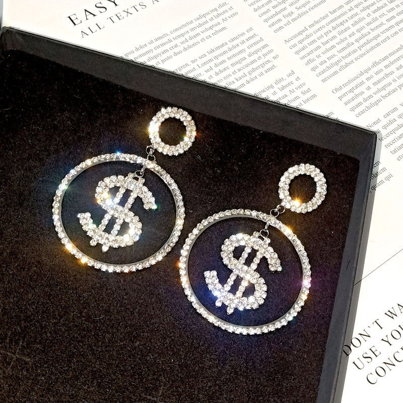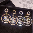 Dollar $Letter Symbol Coin Rhinestone Earrings