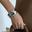Fashionable round wide grain spring bracelet, high-end niche irregular alloy Bracelet