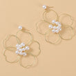 Pearl woven large flower earrings, women's trend, hand wrapped earrings, jewelry
