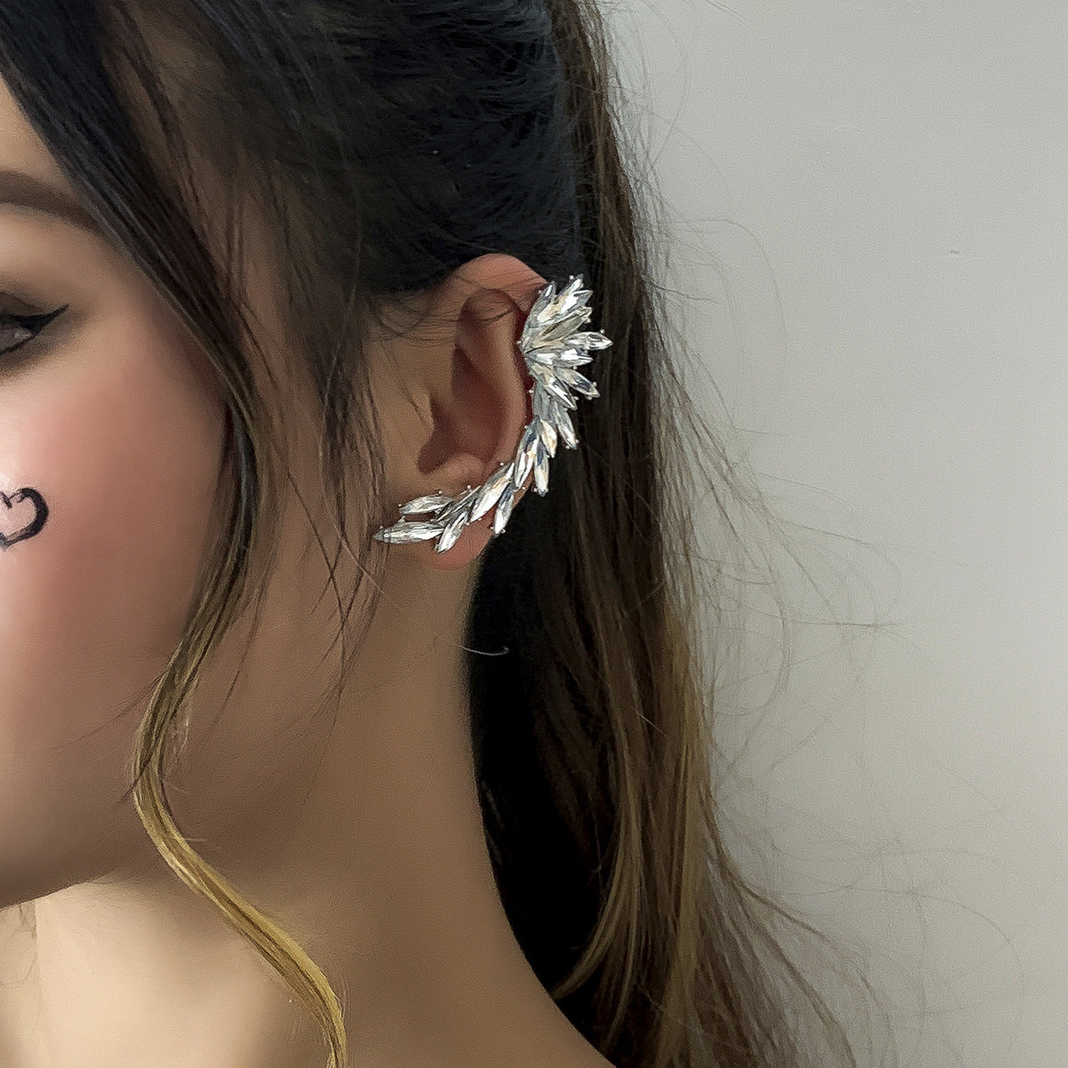 Sweet and cool versatile rhinestone outline elf ear hook exaggerated single alloy niche earring female