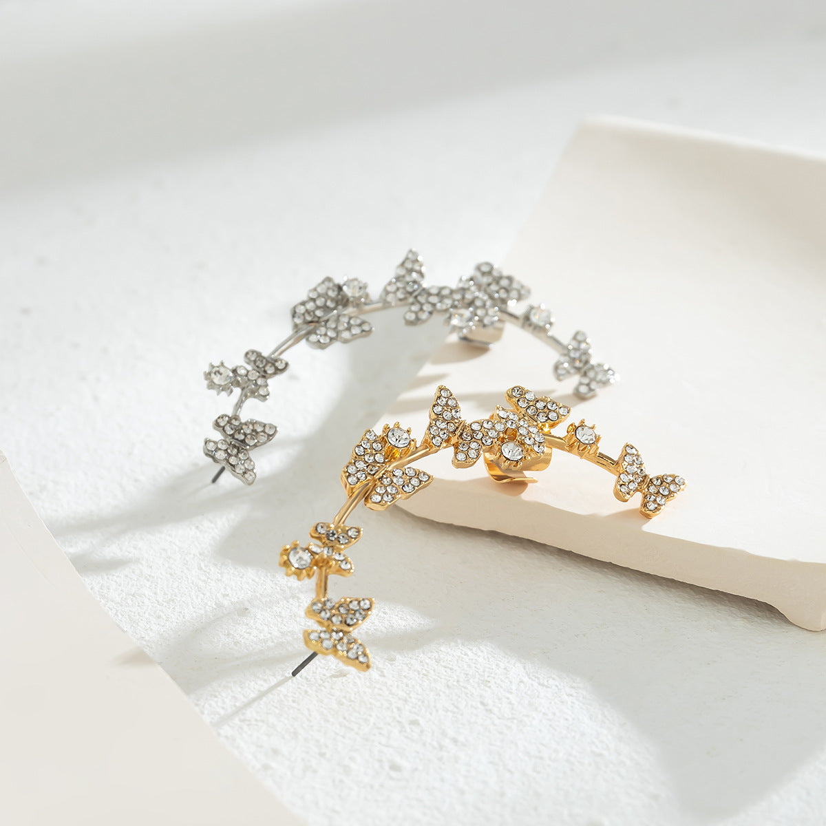 Sweet Forest Water Diamond Butterfly Single Ear Hanging Charm Full Diamond Retro Earnail Earbone Clip