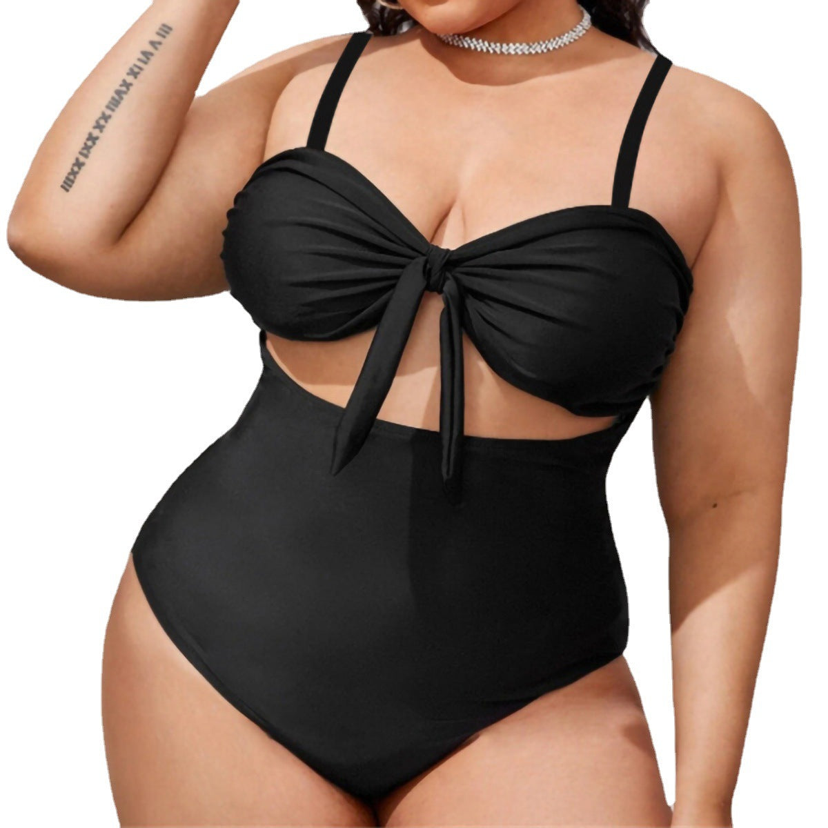 Swimsuit Women's Triangle Linked Strap Tube Top Black Large Size Fat Woman